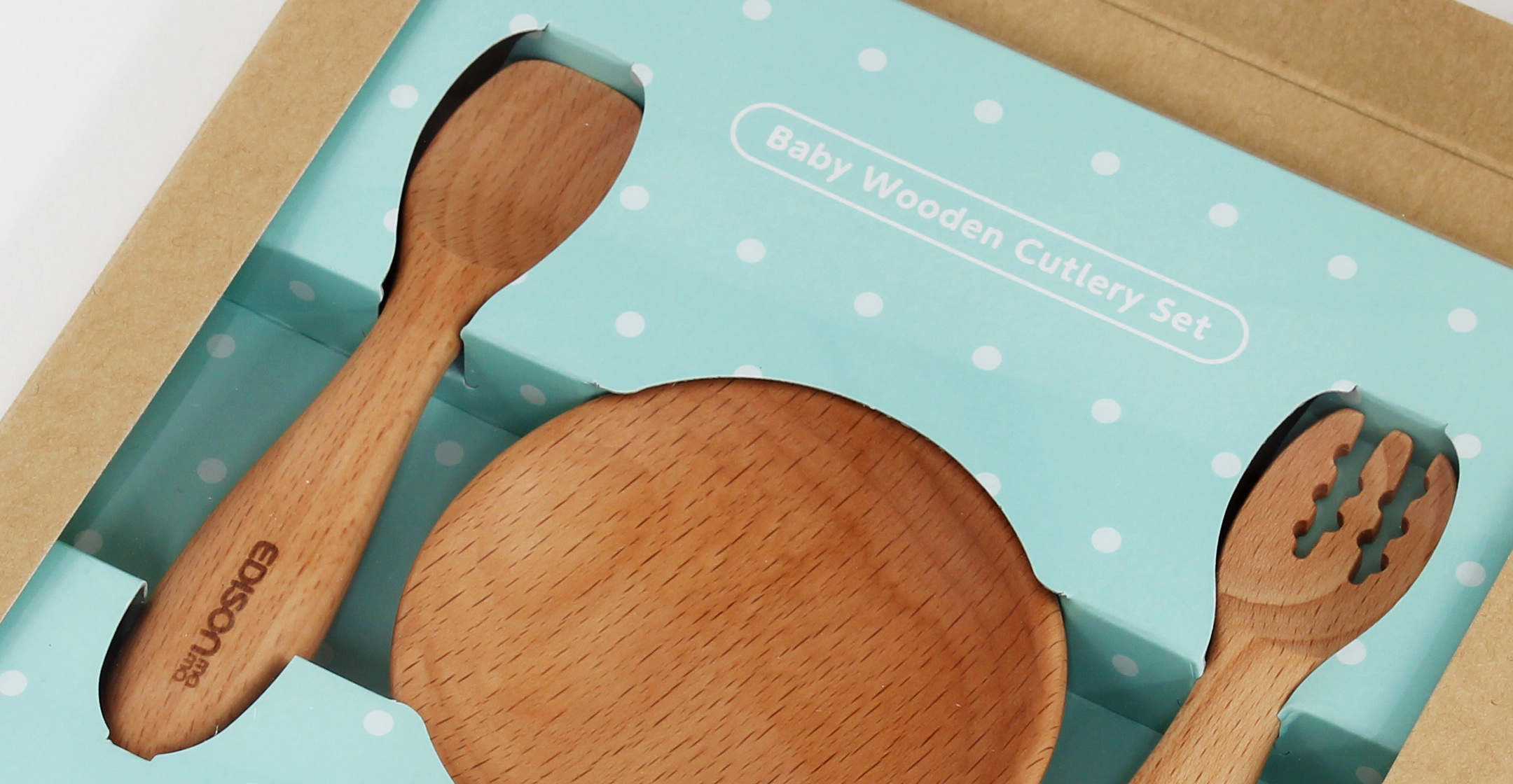 パッケージの設計に入る時に「中身を固定し見せること」「木製カトラリーの素材感を出すこと」「贈答品としての高級感を出すこと」が希望する内容としてありました。「製品を固定し見せること」については、製品を仕切りで固定し、PP別パーツで窓を作りました。「木製カトラリーの素材感を出すこと」に合う、用紙の選定をして実現に至りました。「贈答品としての高級感を出すこと」については、スリーブと仕切りに特色印刷で共通色にして、緑(自然)を感じる緑色をベースにした落ち着いたマット調で高級感を演出しております。