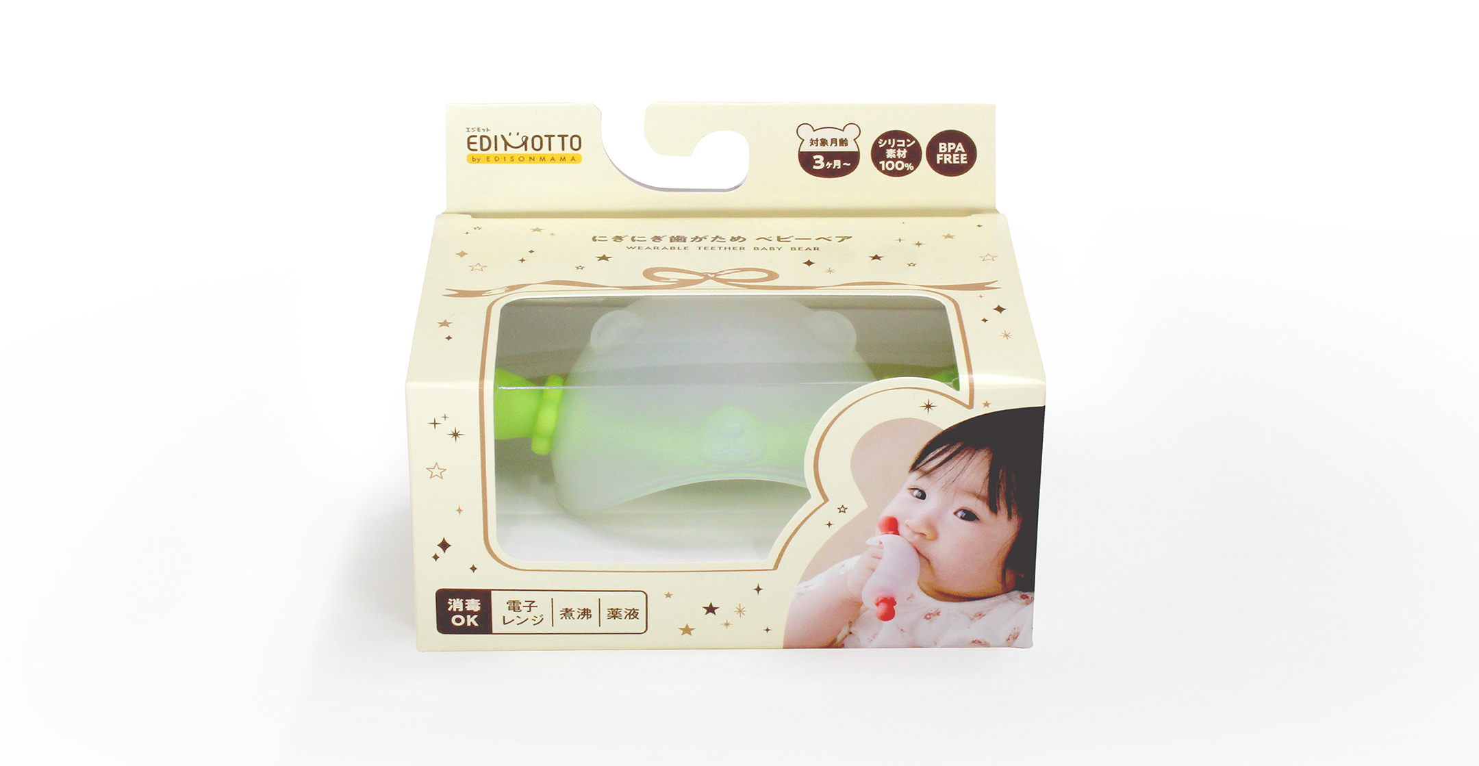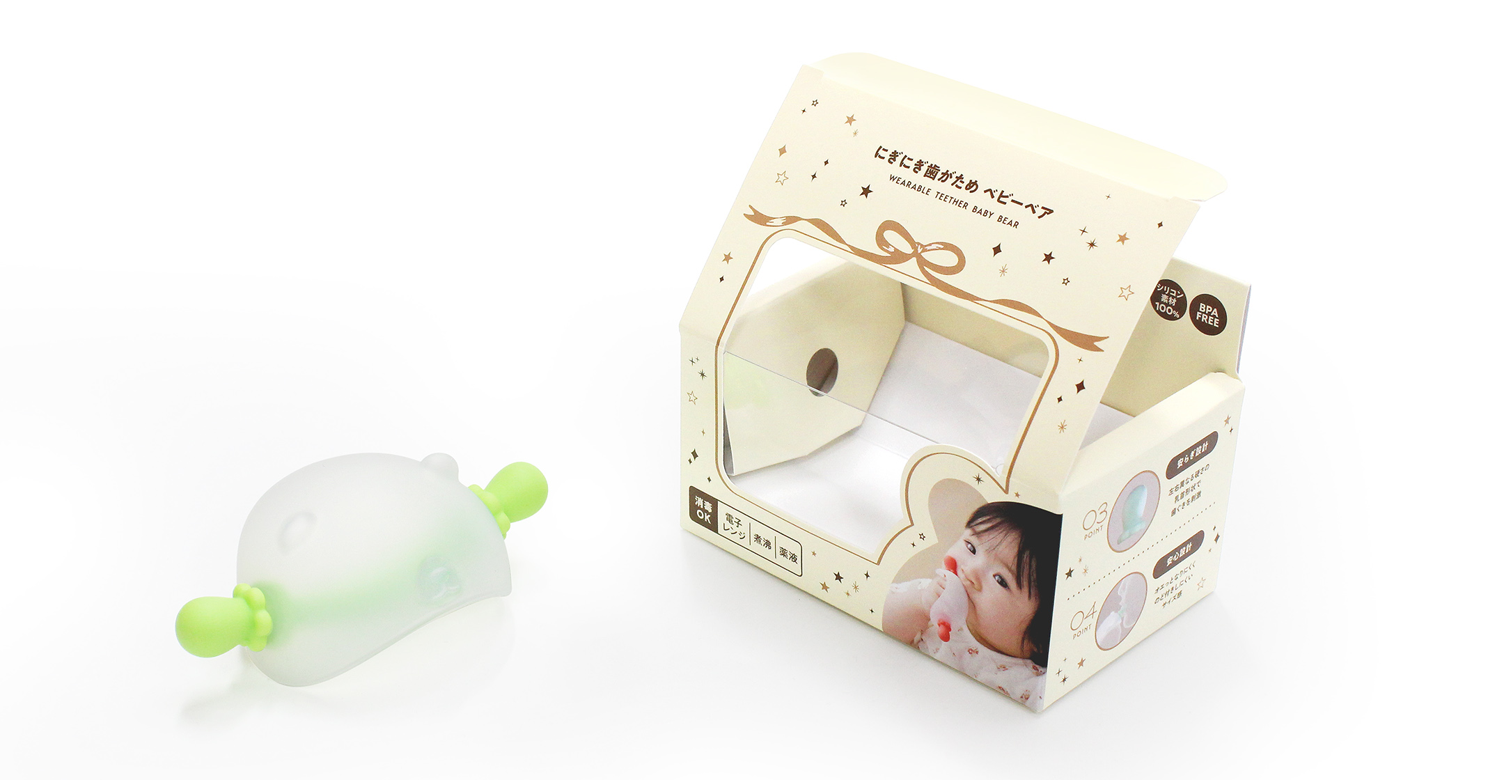 赤ちゃんが使うグローブタイプの歯がためを包装するパッケージです。